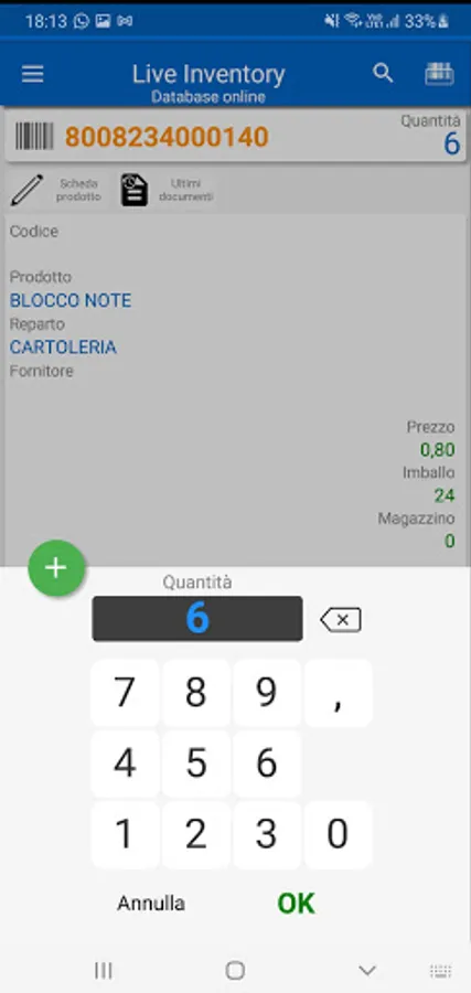 The article can also be researched descriptions nell'anagrafica on the server or by manually typing the barcode.