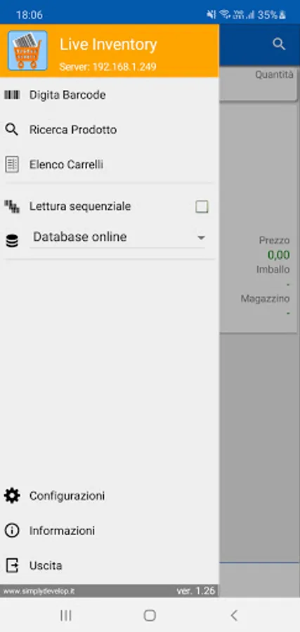 terminalino of software for Android interfaced to EasyRetail software and in general to all SIMPLYDEVELOP management applications devices.