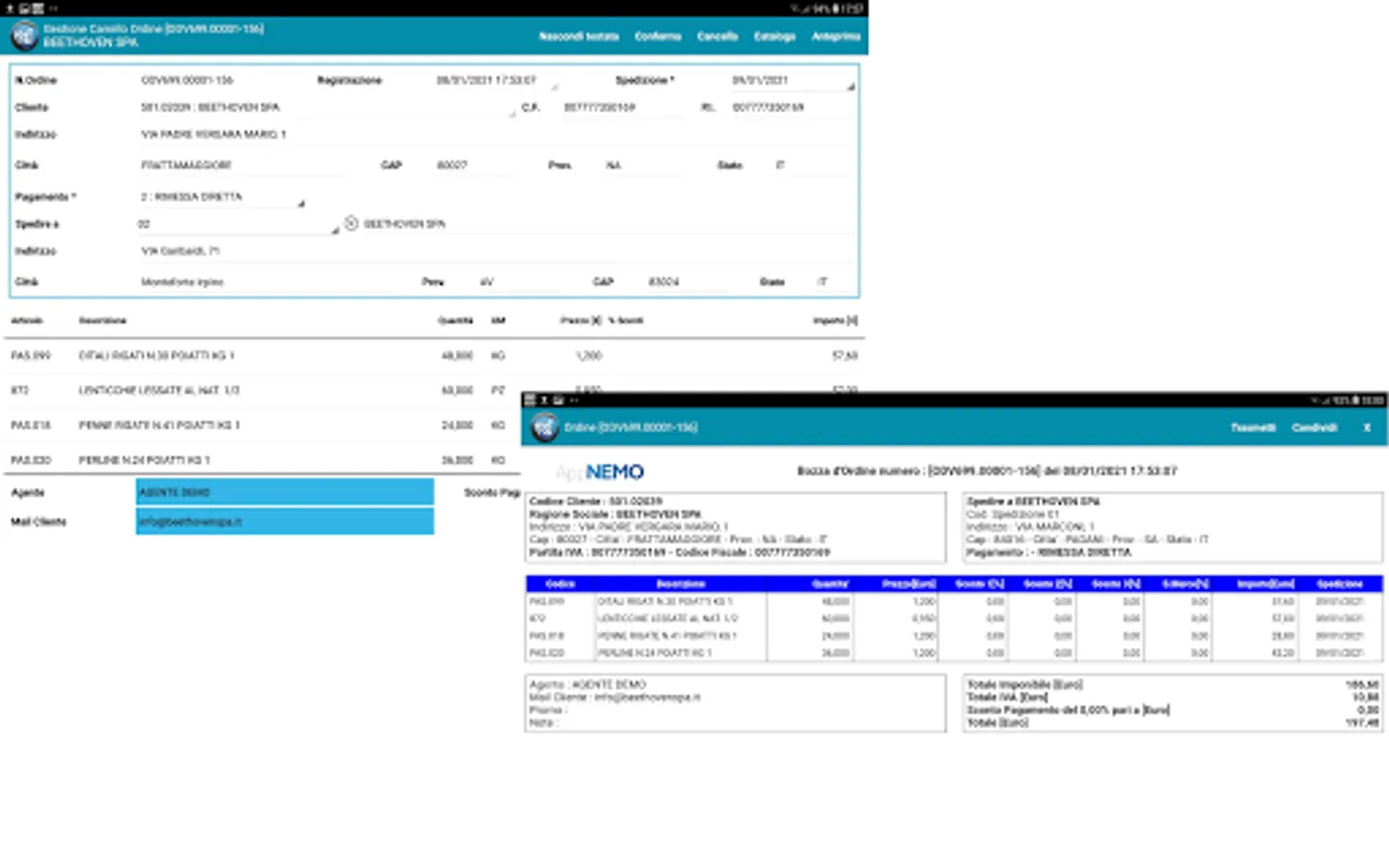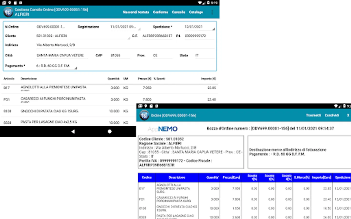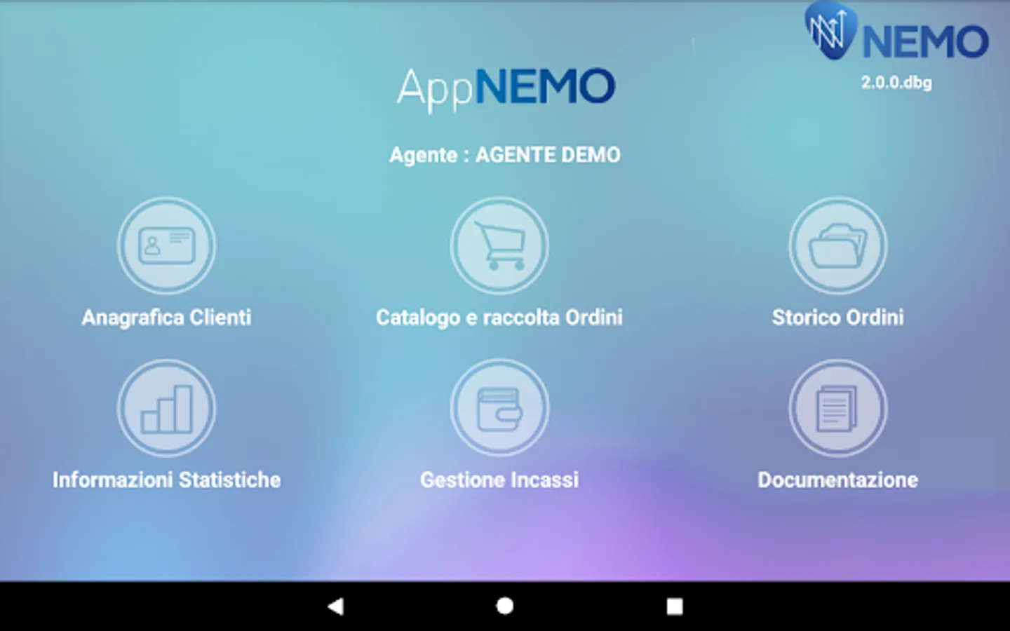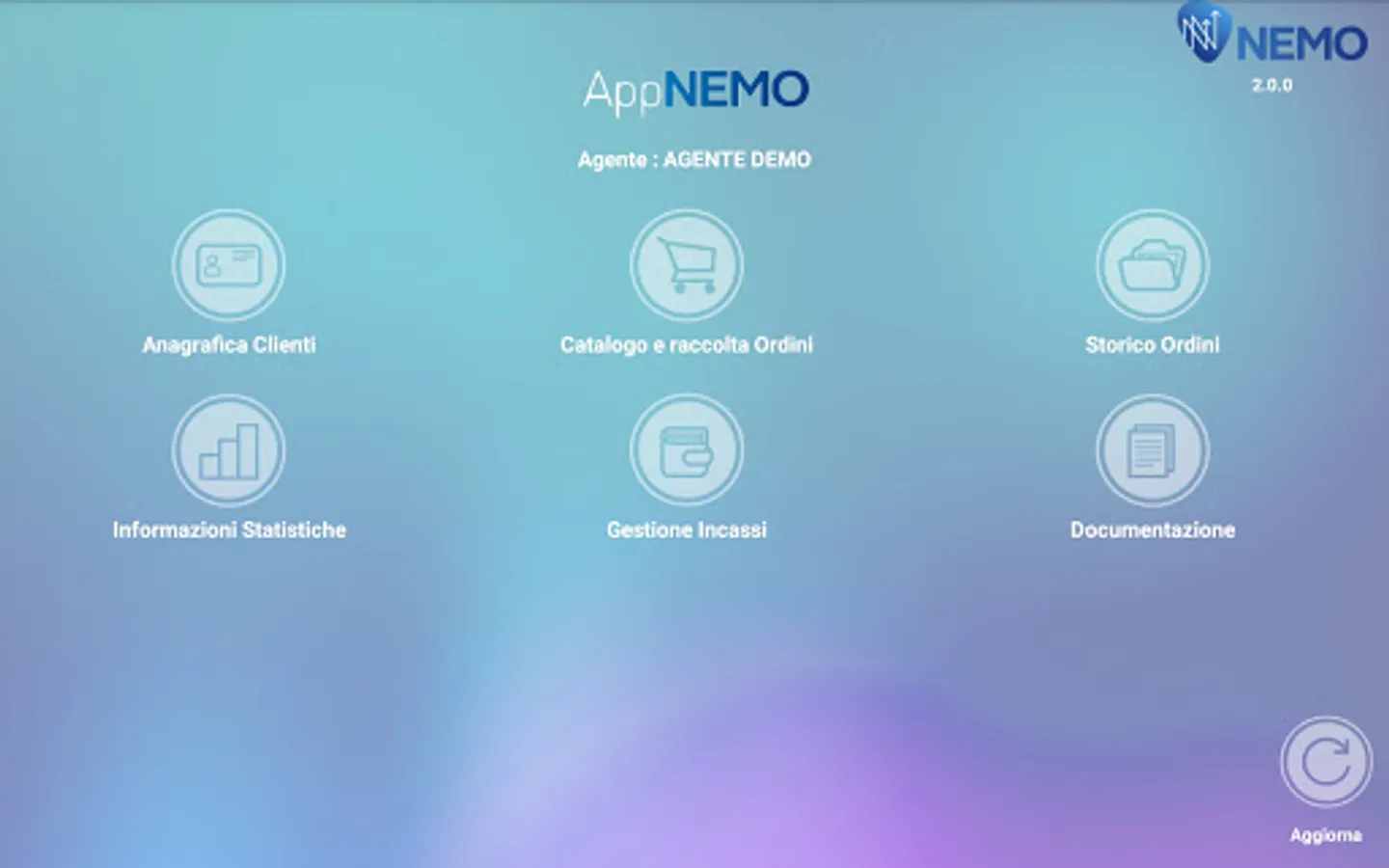 It is an application developed by Sior s.r.l. for Tablet simple and intuitive, modular and customizable, which allows you to improve the sales process. Ne.M.O. allows the management of a Product Catalog with related price lists, subdivision into categories, detailed technical descriptions, presentation of videos, the collection of orders and the transmission of the same to the company management system, the viewing of documents (statistics, commissions, outstanding payments, ...) and geolocation. Among the many advantages: high definition graphics, which allows you to present your products by highlighting their aesthetic and technical characteristics; updating of data in real time, tools and contents in a single support, integration with the ERP system and other company DBs, possibility of customizing interface to navigation structure.