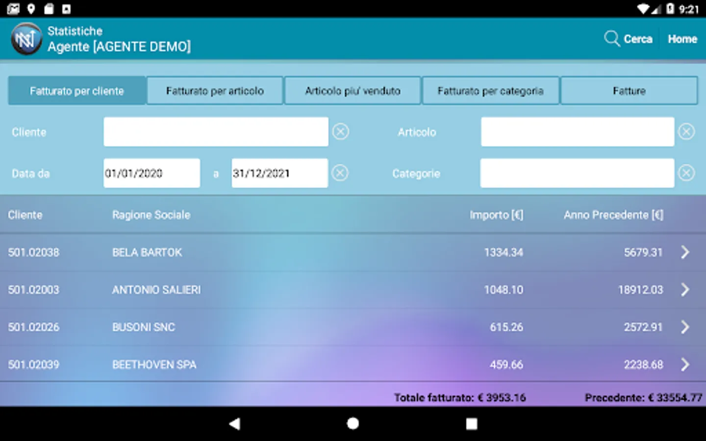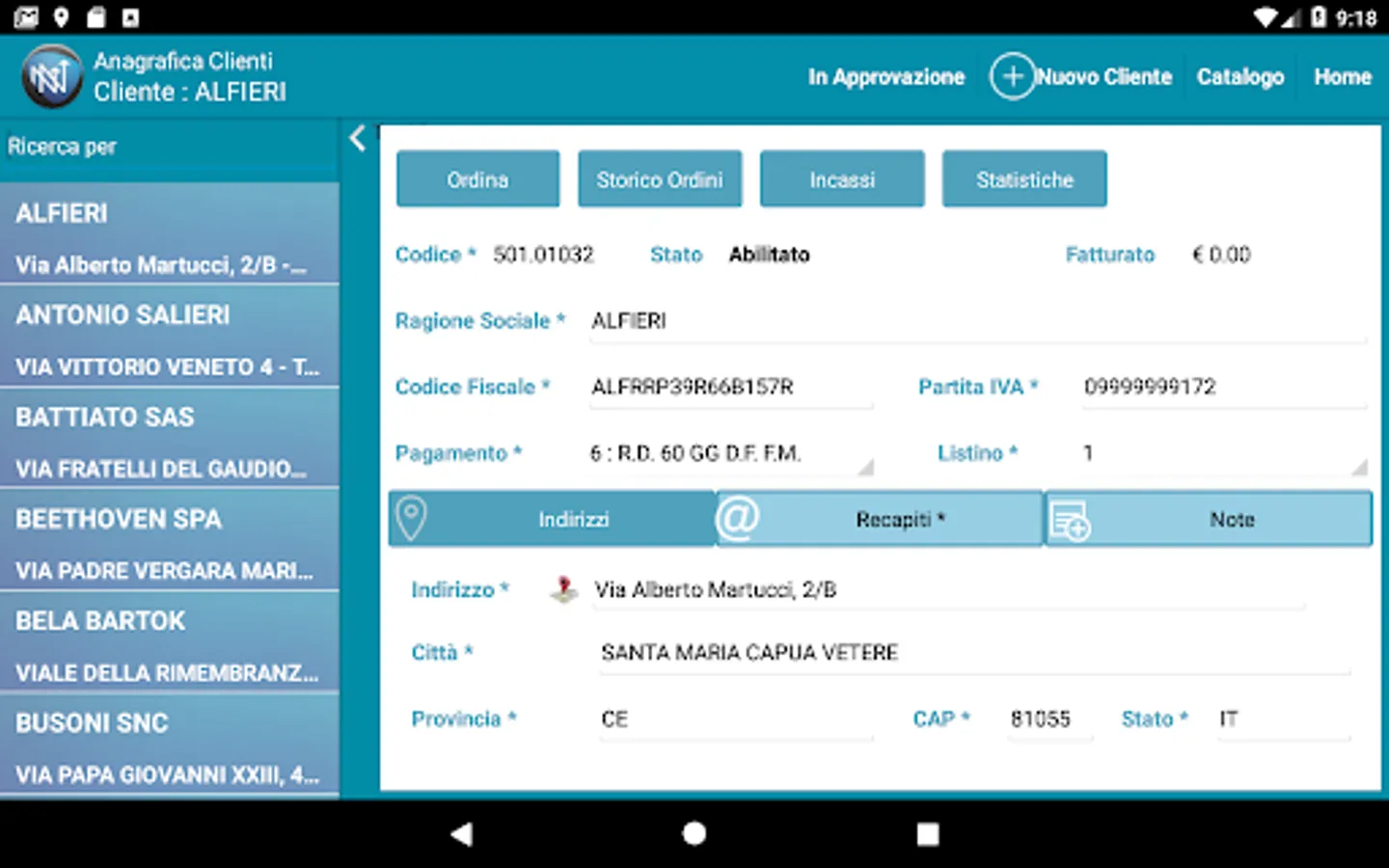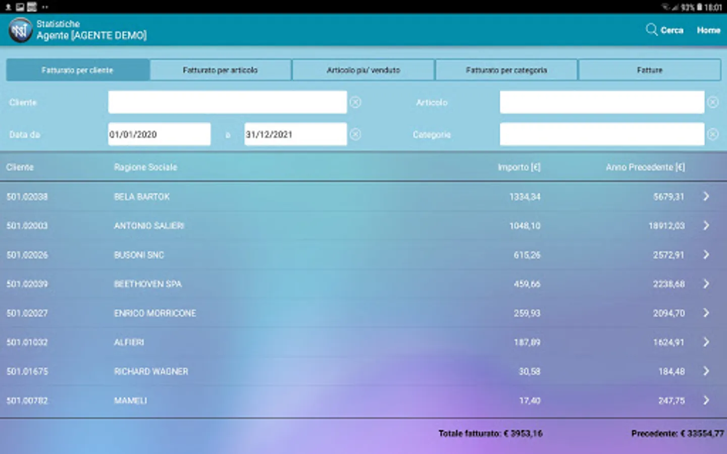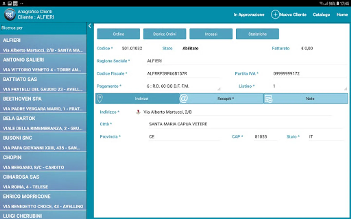 It is an application developed by Sior s.r.l. for Tablet simple and intuitive, modular and customizable, which allows you to improve the sales process. Ne.M.O. allows the management of a Product Catalog with related price lists, subdivision into categories, detailed technical descriptions, presentation of videos, the collection of orders and the transmission of the same to the company management system, the viewing of documents (statistics, commissions, outstanding payments, ...) and geolocation. Among the many advantages: high definition graphics, which allows you to present your products by highlighting their aesthetic and technical characteristics; updating of data in real time, tools and contents in a single support, integration with the ERP system and other company DBs, possibility of customizing interface to navigation structure.