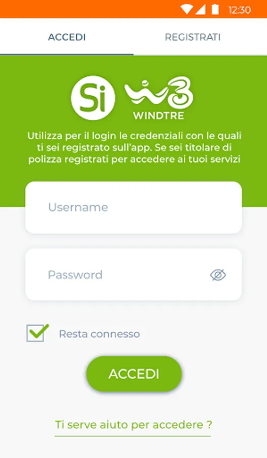 To access the functions of the Si WINDTRE app, you need to register directly on the app.