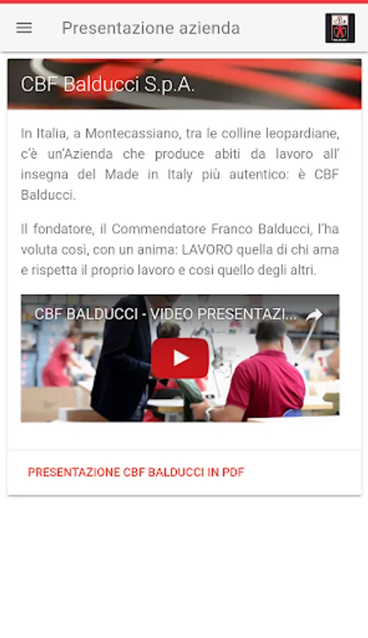 In Italy, Montecassiano, among Leopardian hills, there is a company that produces work clothes to 'teach the most authentic Made in Italy: it CBF Balducci.