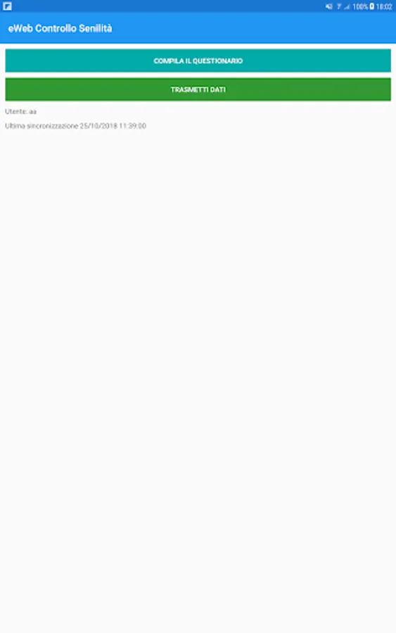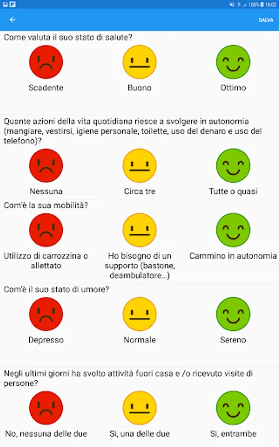 App of the social assistance consortium of Alba for the loading of the questionnaires on the health of the elderly