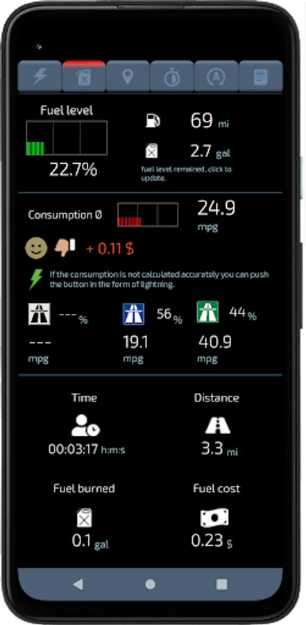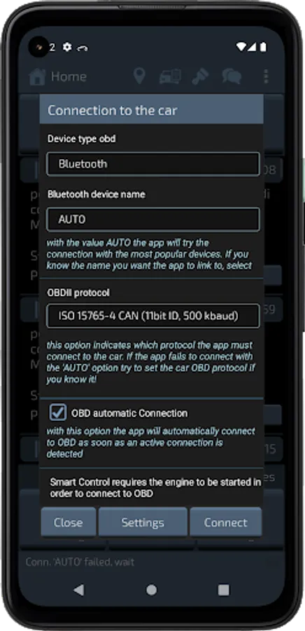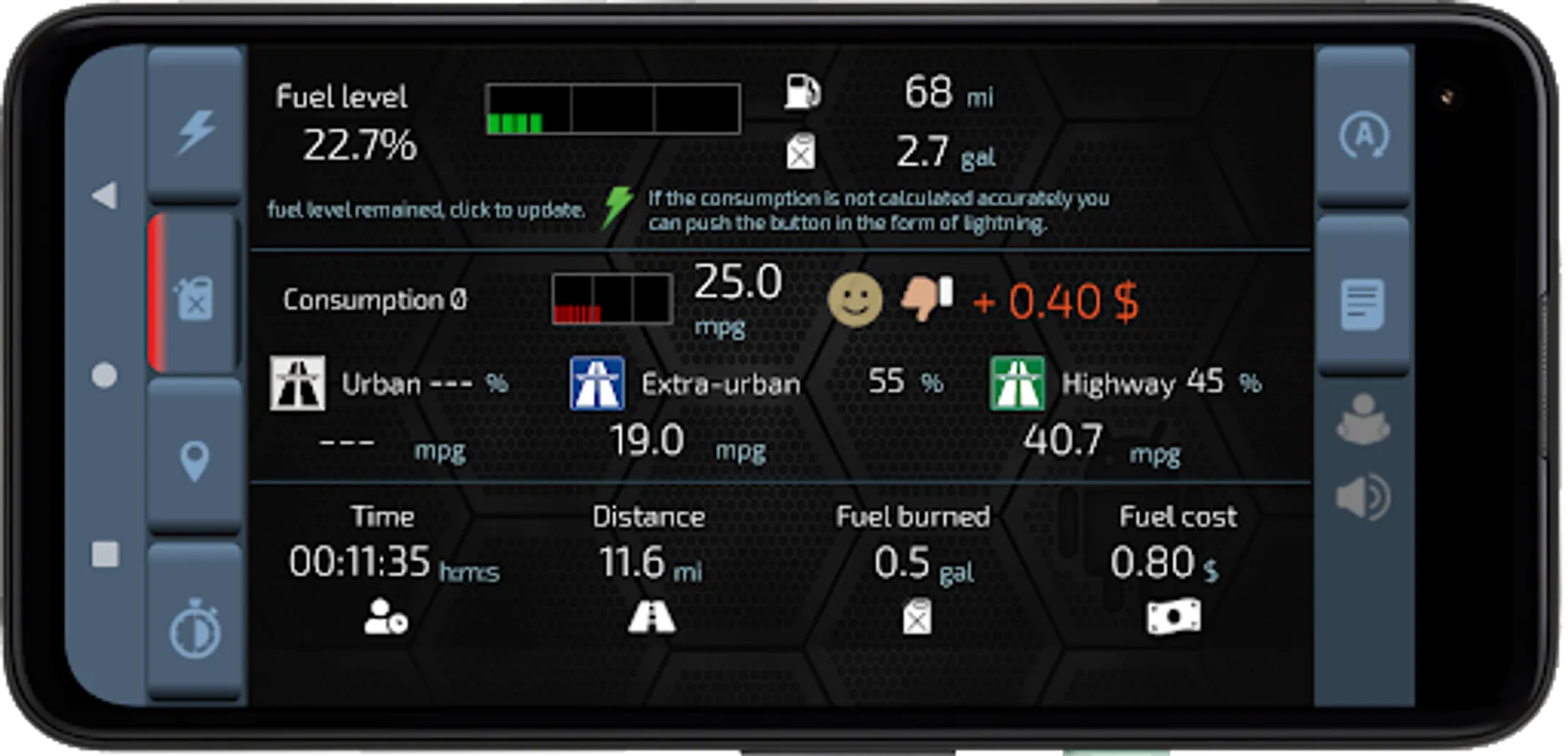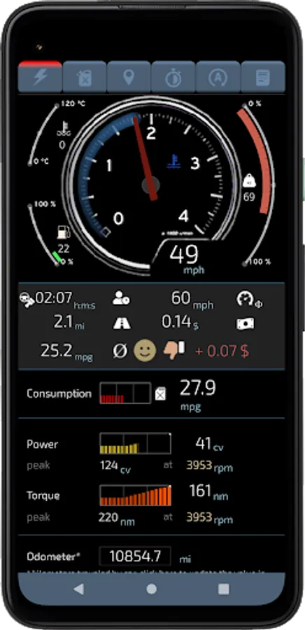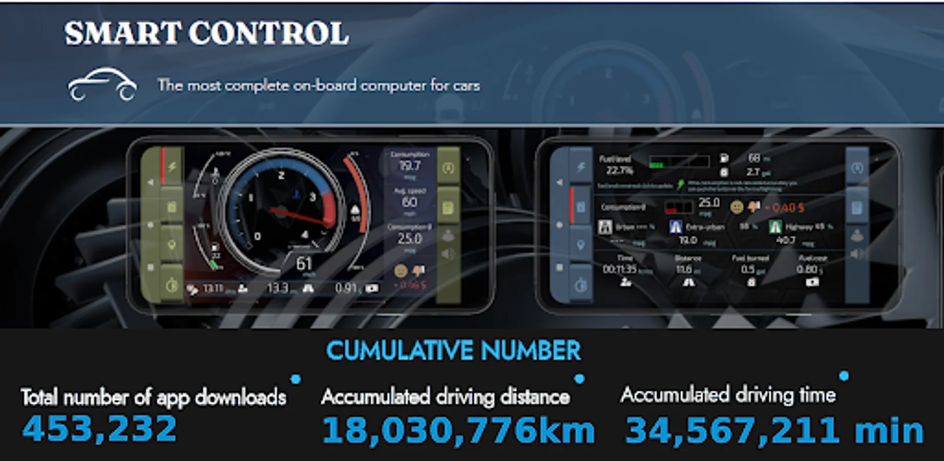 Thanks to the information provided by the OBDII diagnostic, Smart Control is able to calculate the consumption, detect the beginning and the end of every move and store trips; in addition, it can calculate and track performance data such as power and speed up or braking etc.