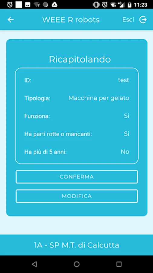 This App allows teachers, participating in the WEEE R robots campaigns, to read the barcode attached to EEE and WEEE objects brought by children to school and to transmit it to the WEEE R robots Web App, to complete the object classification procedure.