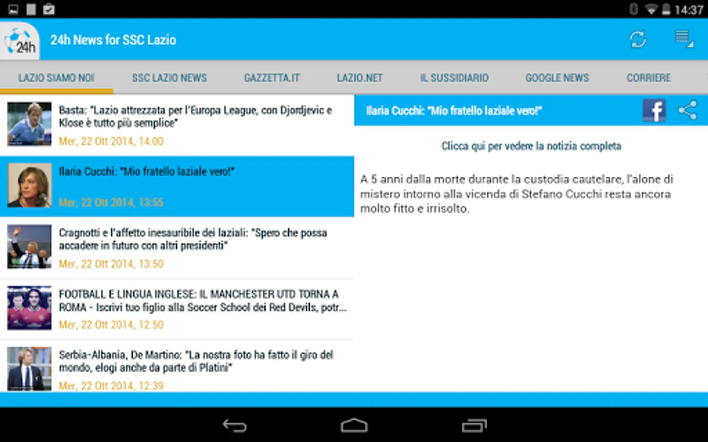 The only 24h! The first 24 hours! All other came after! The best! Lazio News 24h combines the news of the major newspapers and web portals in one place!