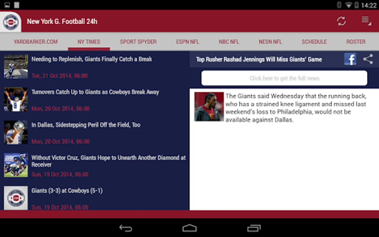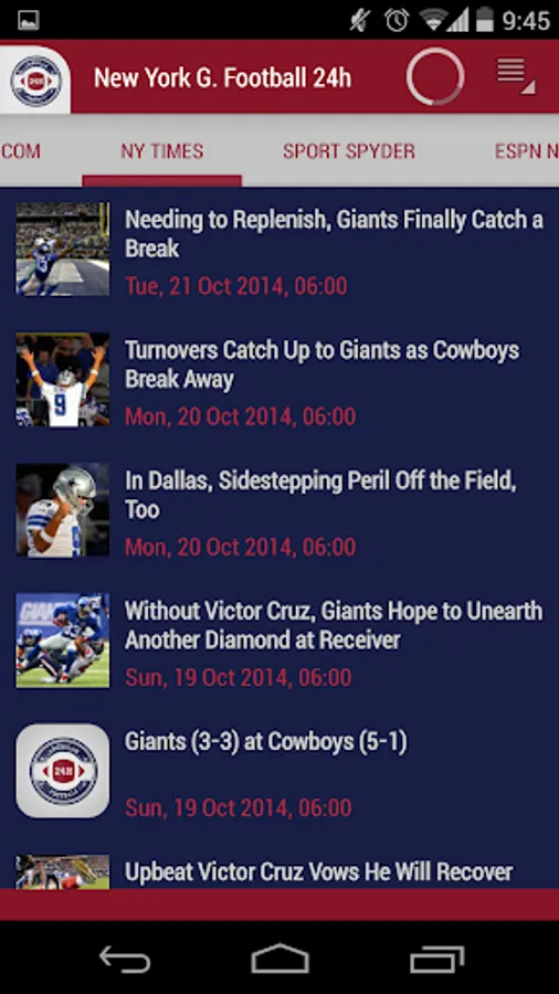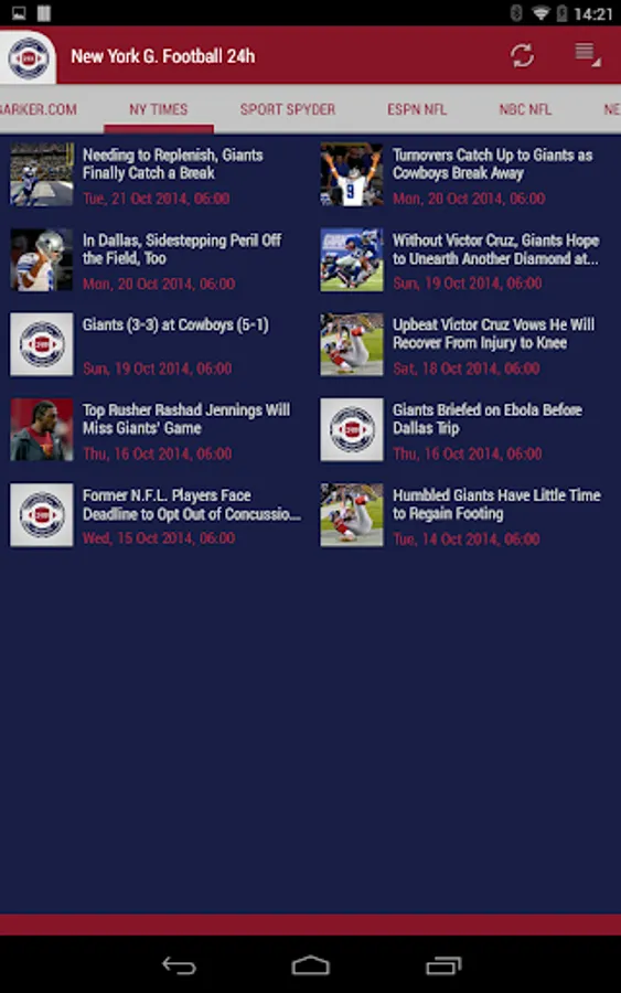 Simply the best! New York G. Football 24h mashes up news from newspapers and web portals in a single app!