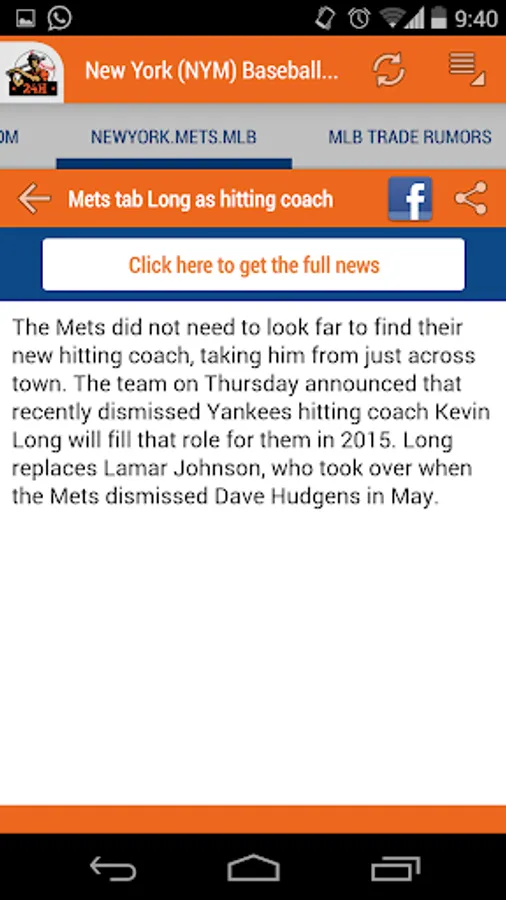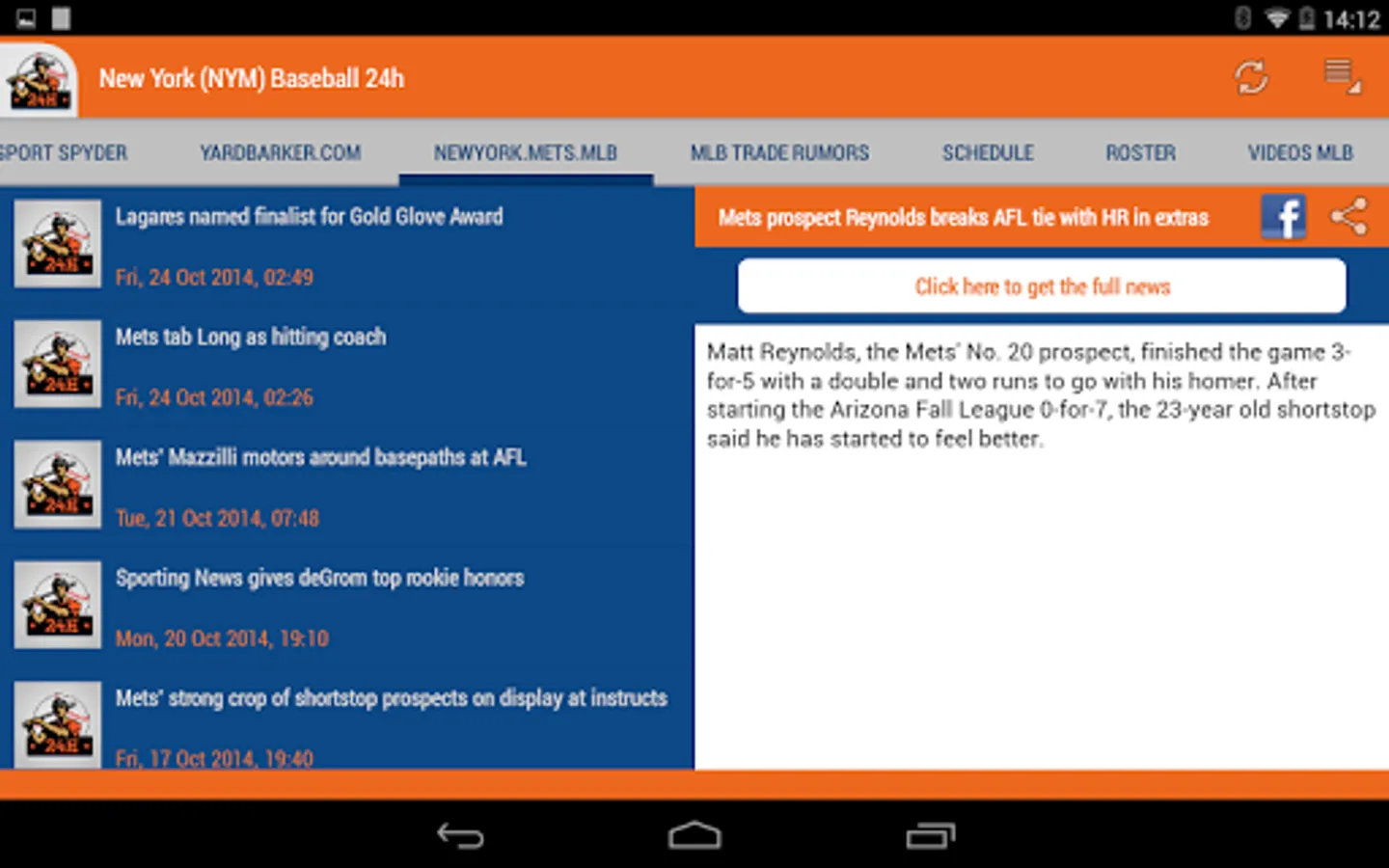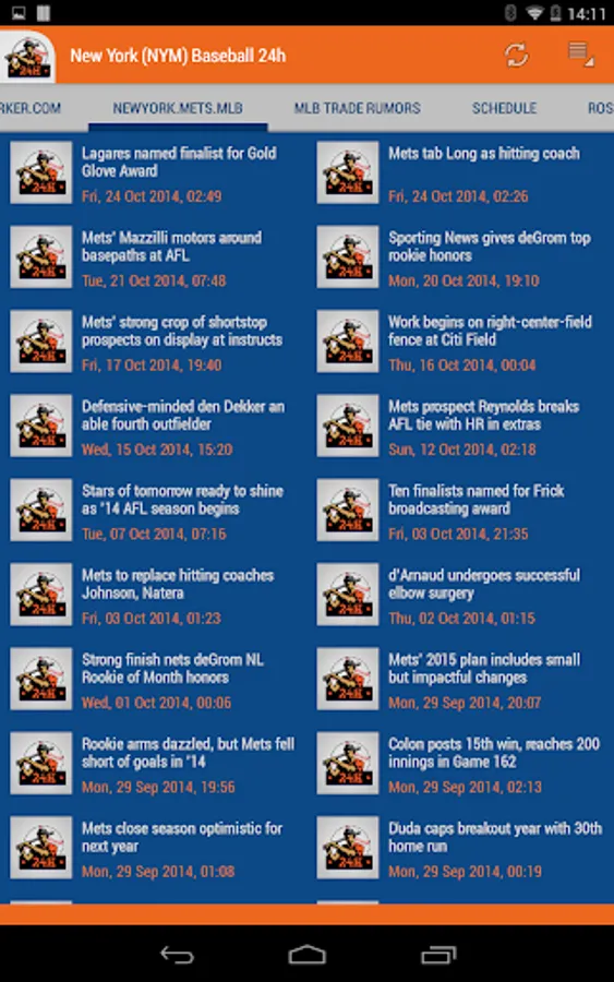 Simply the best! New York (NYM) Baseball 24h mashes up news from newspapers and web portals in a single app!