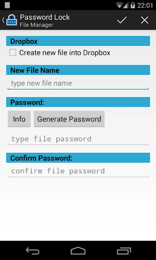 - Your files can be synced to the other Android devices or to your Desktop through Dropbox (Full edition);