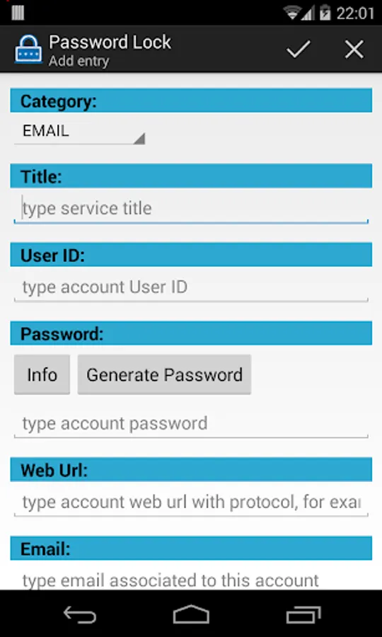 - You can create all the "categories" and "passwords" you wish, limitless;