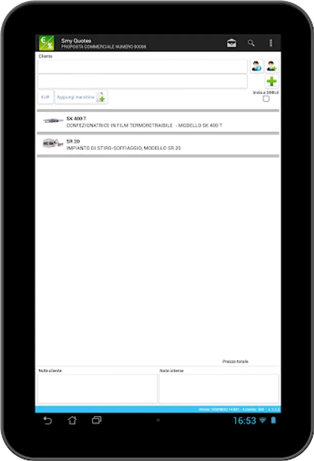 SMIGROUP app for the off-line consultation of price lists and the issuing of commercial offers to be forwarded to SMILE central system.