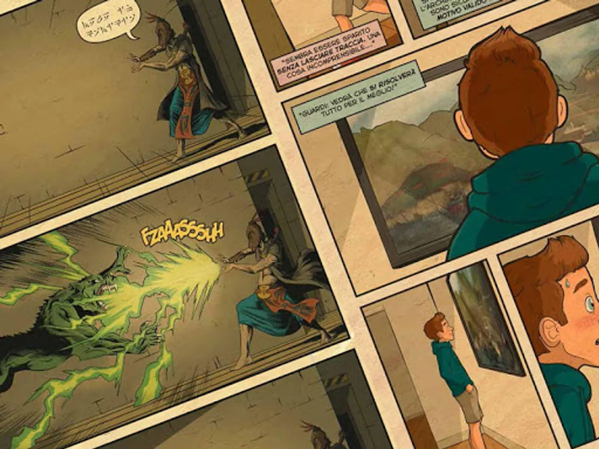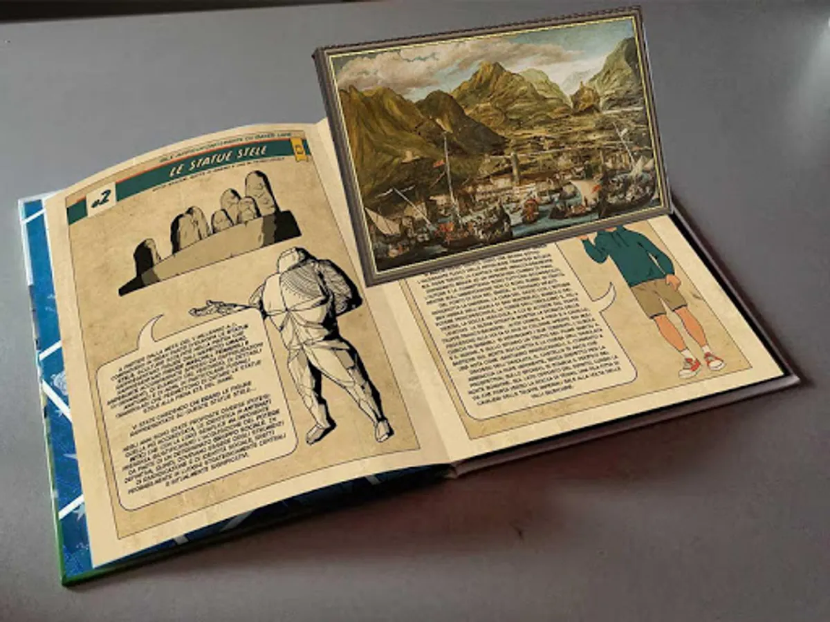 Simply frame the Datasheet pages of the cartoon and you will be able to discover extra characters and works about the Museum in Augmented Reality: