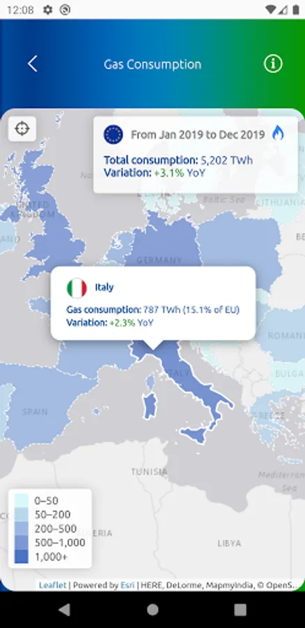 - Energy Consumption: on an interactive European map you can view how much energy each European country has consumed in the last months.