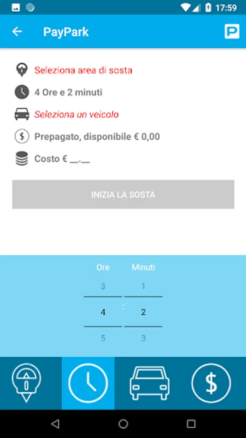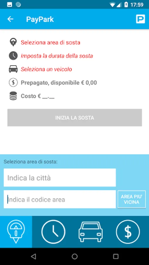 Using GPS the app suggests the staging area at the nearest payment, facilitating the search for parking, and informing the user about the blue areas of the city.
