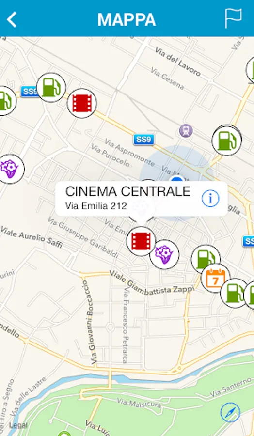 Appu Imola identifies your position, shows you the events and activities on the map or makes you choose those closest to you.