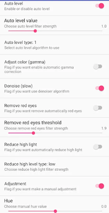 -Adjustments: It is also possible manually adjust the hue, saturation, brightness and contrast