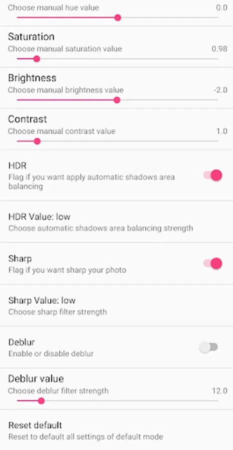 -Deblur: you can reduce and remove deblur using an action filter between 0 to 100