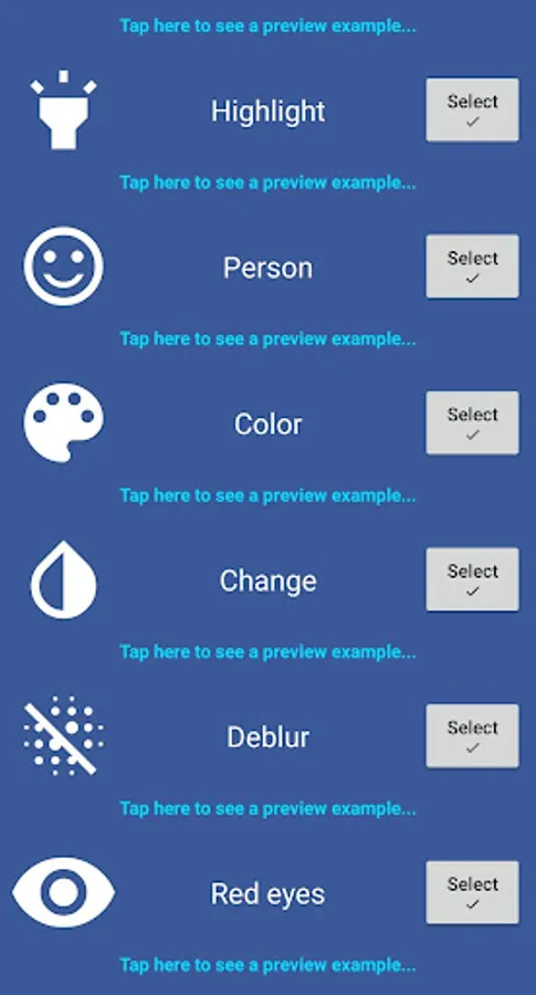 -Red eyes: is suggested in case of selfies that have red eyes defects