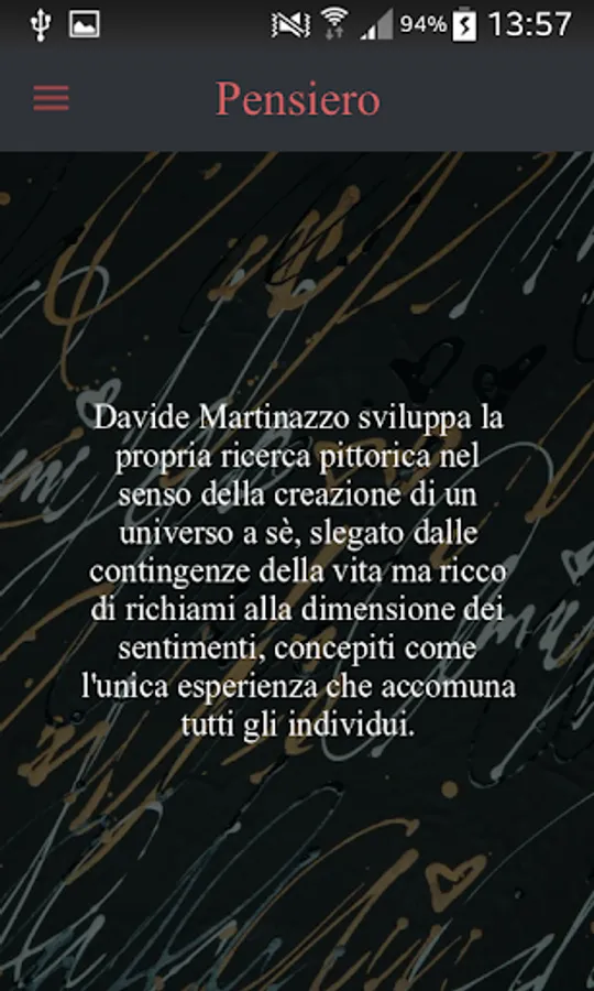 This application allows you to browse through all the works of David Martinazzo: paintings, sculptures, performances and more. In addition you will always be up to date on all the latest news and events dedicated to art.