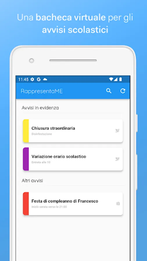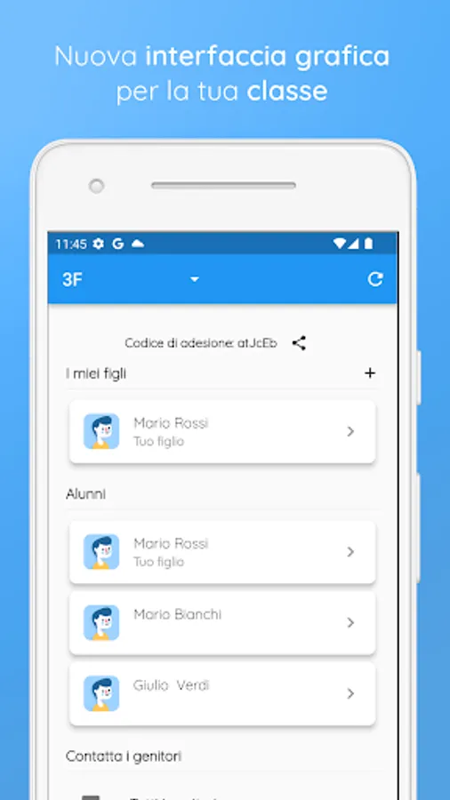 Allow parents to access a personal area with the useful data of their children and the communications of each respective class