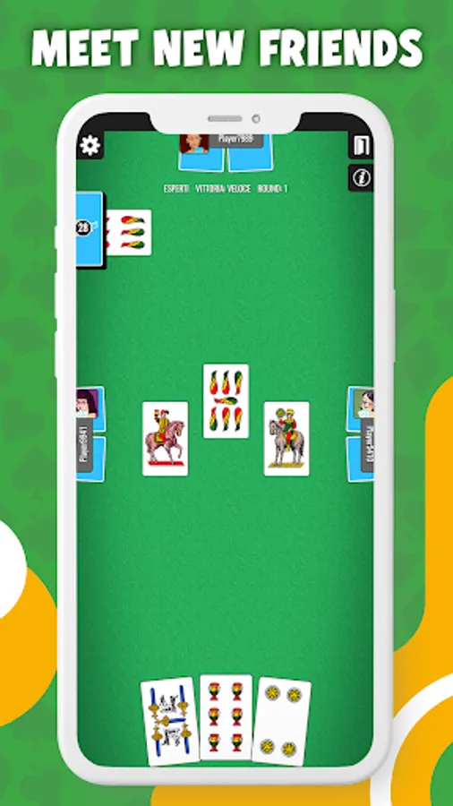 Play from your smartphone or tablet, in horizontal or vertical mode, Briscola Più will win you over with its speed, fluidity and precision. You will feel as if you´re playing with your friends! Start playing directly without even registering or log in via Facebook®, Google® or email to play the social and competitive matches!