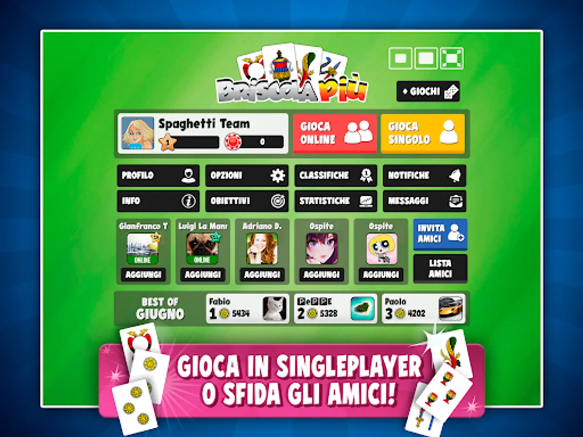 Play Briscola Più online completely free, your enjoyment is guaranteed! Private messages, chat, monthly trophies, badges, personal statistics and much more awaits you!