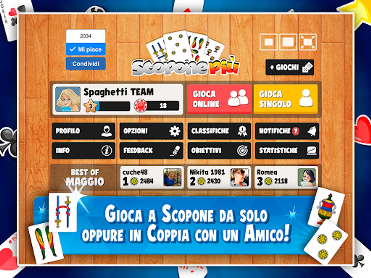 Play Scopone Più online completely free, your enjoyment is guaranteed! Private messages, chat, monthly trophies, badges, personal statistics and much more awaits you!