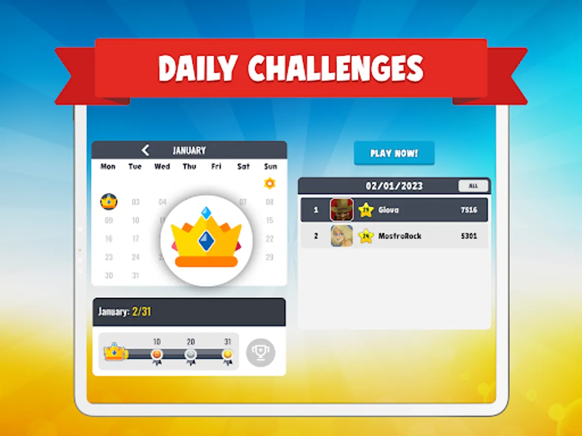 Show off your mastery by becoming one of the daily best players and dominating the leaderboard.