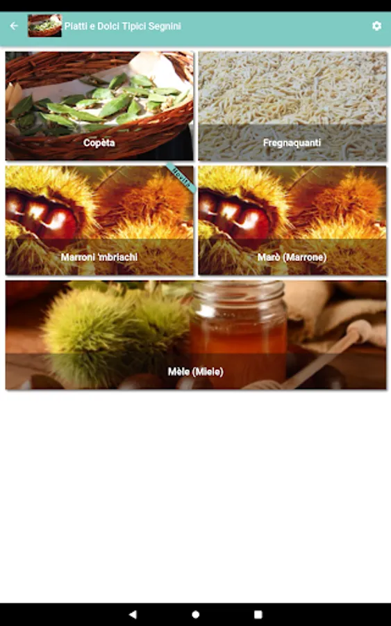- Typical Segnini Dishes and Desserts: the typical dishes of the Segnina tradition (list not complete and being updated);
