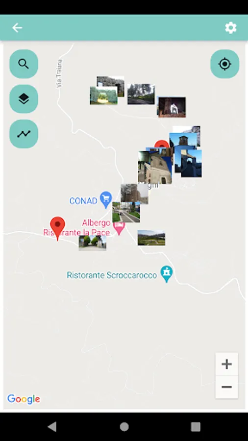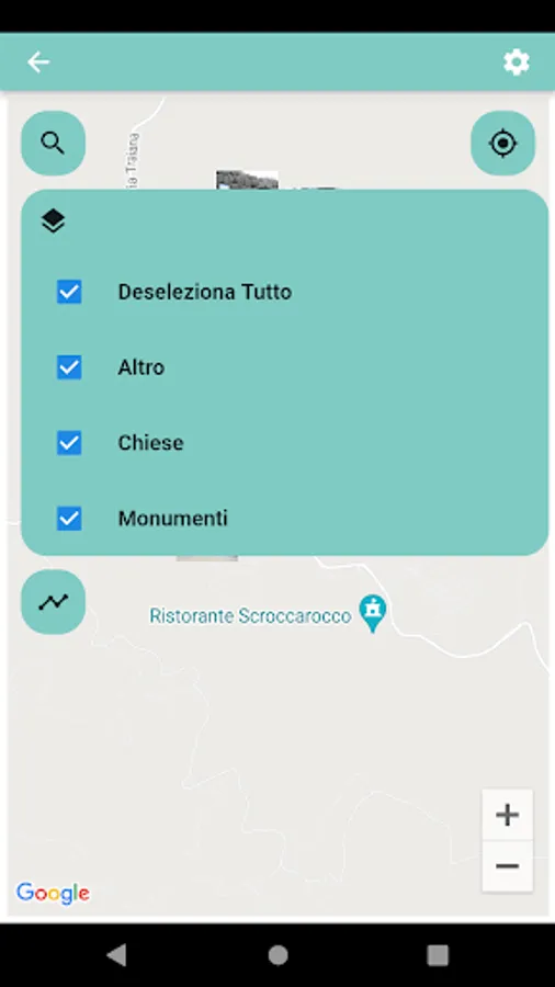 - Routes: a selection of routes displayed on the map, navigable, where you can see all the points of interest in addition to the chosen route and you can open Google Maps to calculate the route to a point of interest;