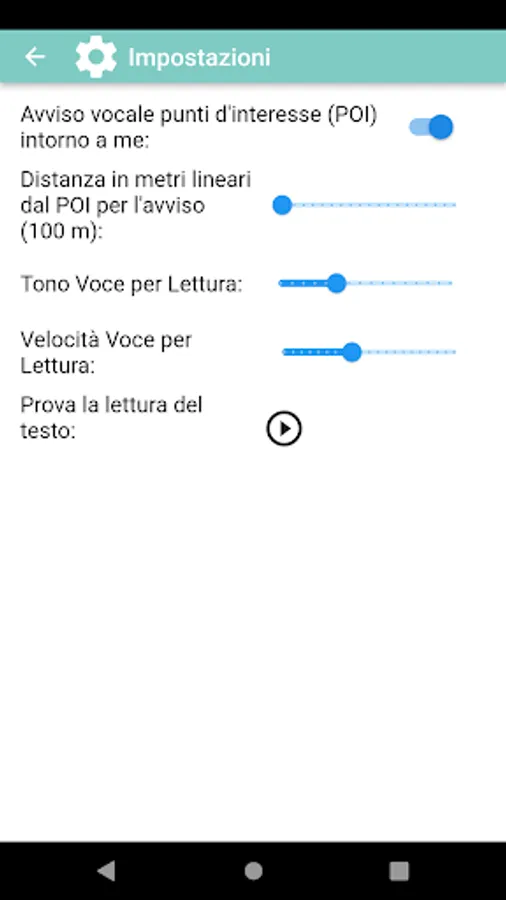From version 1.5.0: AroundMe: it is possible to keep active the voice signaling of the Points of Interest near your position, through the new Settings section.