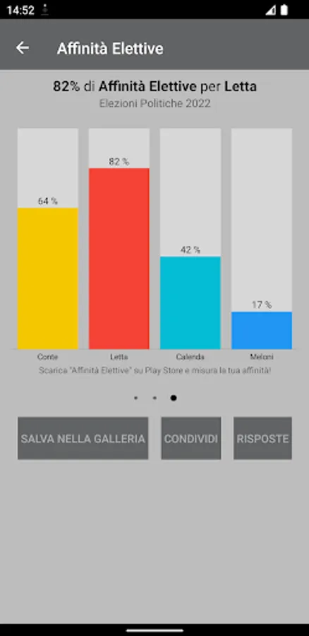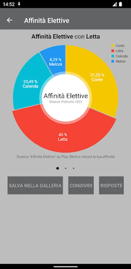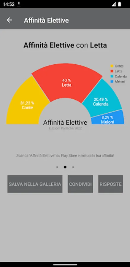 Very often people support or support one or the other political force without actually understanding or knowing their position on the main issues. In taking the test you are influenced neither by personalisms nor by ideologies, but only by ideas because Elective Affinity really compares you with the electoral programs of the candidates.