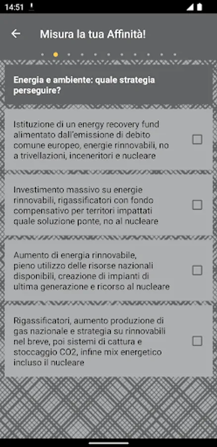 The test focuses on 11 significant themes of the electoral campaign, from civil rights to work, from foreign policy to taxation, from justice to the economy. For each question you can choose one of the possible solutions proposed, as if you were voting at the polling station. The proposals are taken from the electoral programs of the main lists, or coalitions of lists, candidates in the political elections of 25 September 2022. You will then be revealed the result in percentage terms for each candidate, as in the elections!