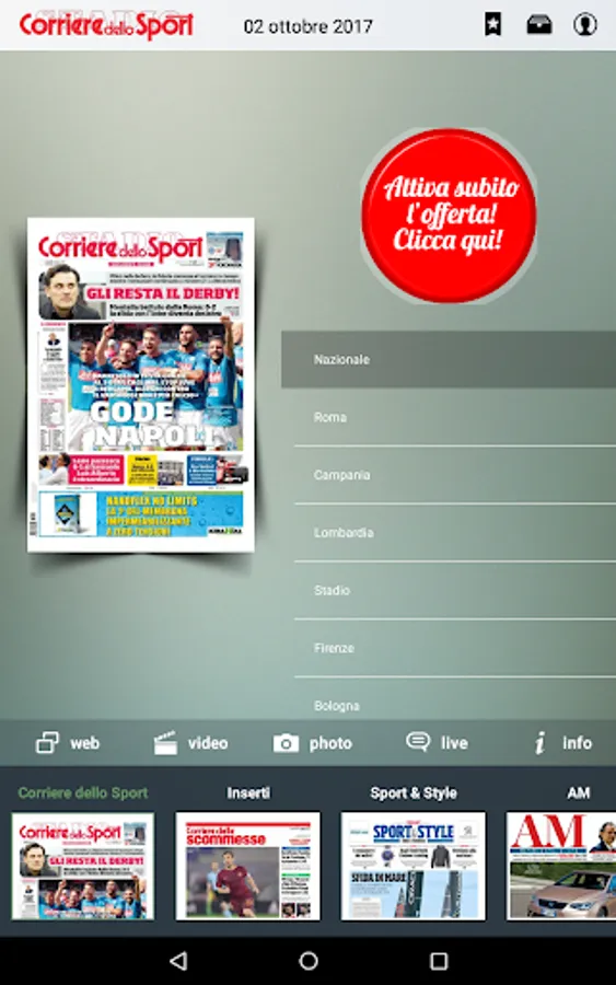 The newly printed daily is available in digital version in 8 different editions (Bologna, Campania, Florence, National, Puglia, Rome, Sicily and Stadium) enriched with multimedia content.