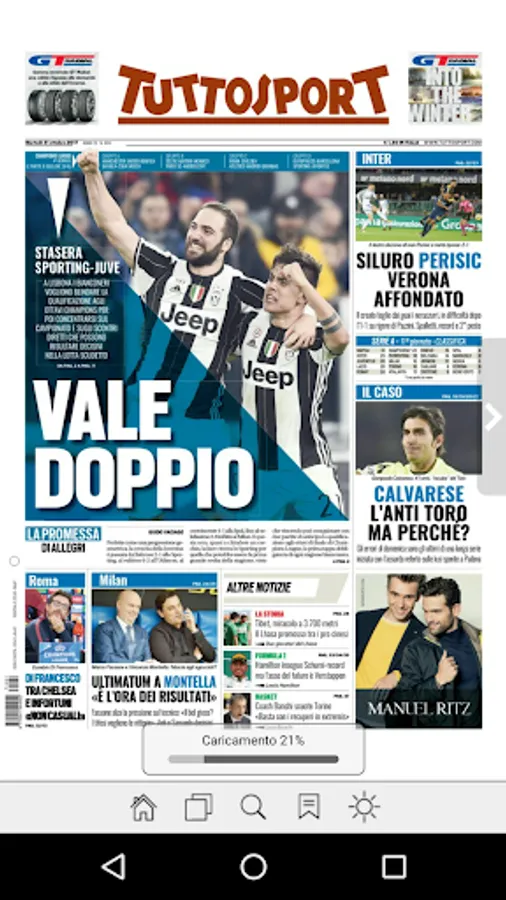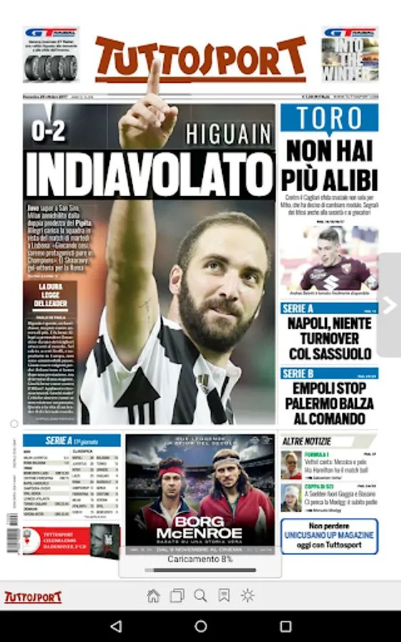 Download the newspaper, already available from six in the morning, turns the pages and one-touch open your articles that interest you: you will have access to the title, text, and photos. With another touch to the back page of the paper as it is on newsstands.