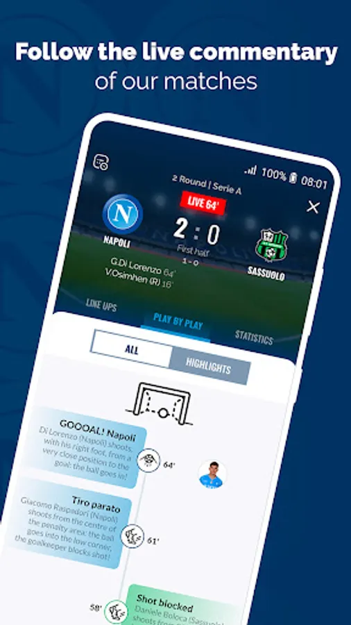 Download the new SSC Napoli - Official App and stay up to date on all the news about the club: consult the information available on the standings, calendar and results achieved with a simple tap! Don't miss the exclusive experiences of your favorite team!