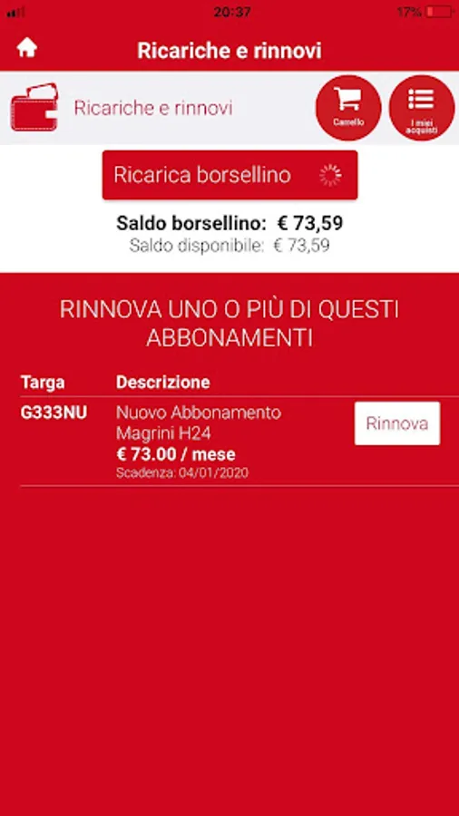 From the app you can top up your purse directly and renew subscriptions to the car parks in the structure and residents.