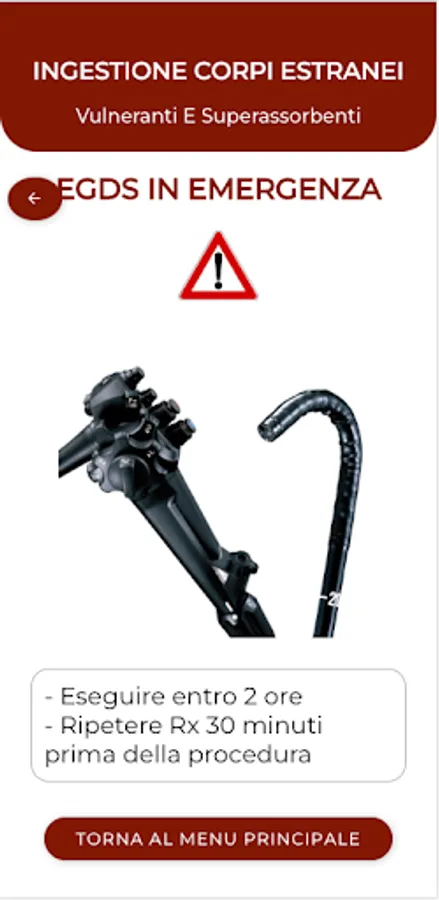 The app entails a review of the most recent guidelines carried out by the surgical team of the Department of Paediatric Surgery, IRCCS, University Hospital of Bologna. The purpose of the app is to provide clinicians a quick and handy instrument in the management of foreign bodies ingestions, based of the features of the patient and the ingested foreign body.