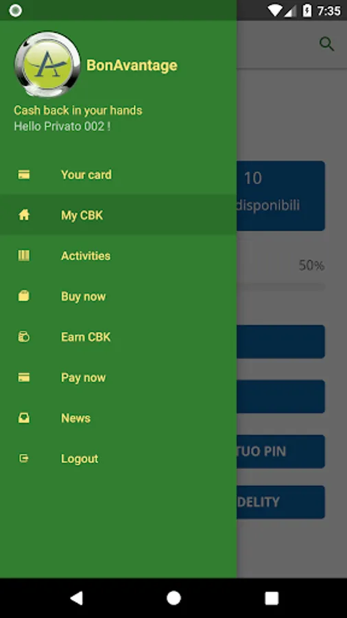 The new circuit based on the Cash Back. To purchase the Partner Company returns a percentage of the amount spent in the form of cash back. The accumulated credit can be stored and recovered at all contracted activities.