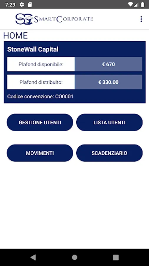 The company that has an agreement with SmartCorporate, will be able to request StoneWall Capital a monthly spending limit in order to offer its employees restaurants, hotels, taxis, parking lots, in every Italian city, without paying the cost of the service.