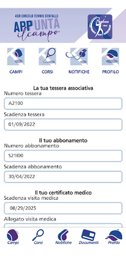 Through the App you can book for free play or sign up for one of the courses promoted by the club. Everyone is required to present the medical certificate (to be uploaded directly to the App) and to register with the club. You can choose whether to pay for the fields with a subscription or on a single login.