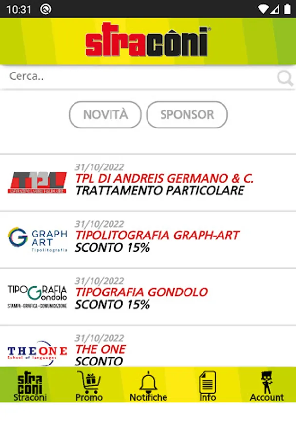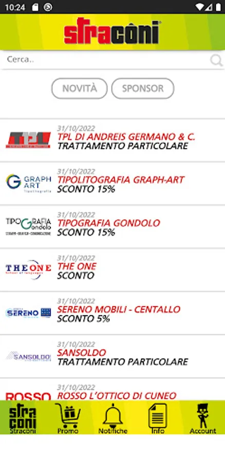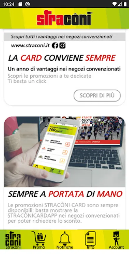 This application will allow you to use all the commercial advantages offered by the Stracôni sponsors present in the STRACÔNI CARD and to receive additional dedicated dedicated discounts.