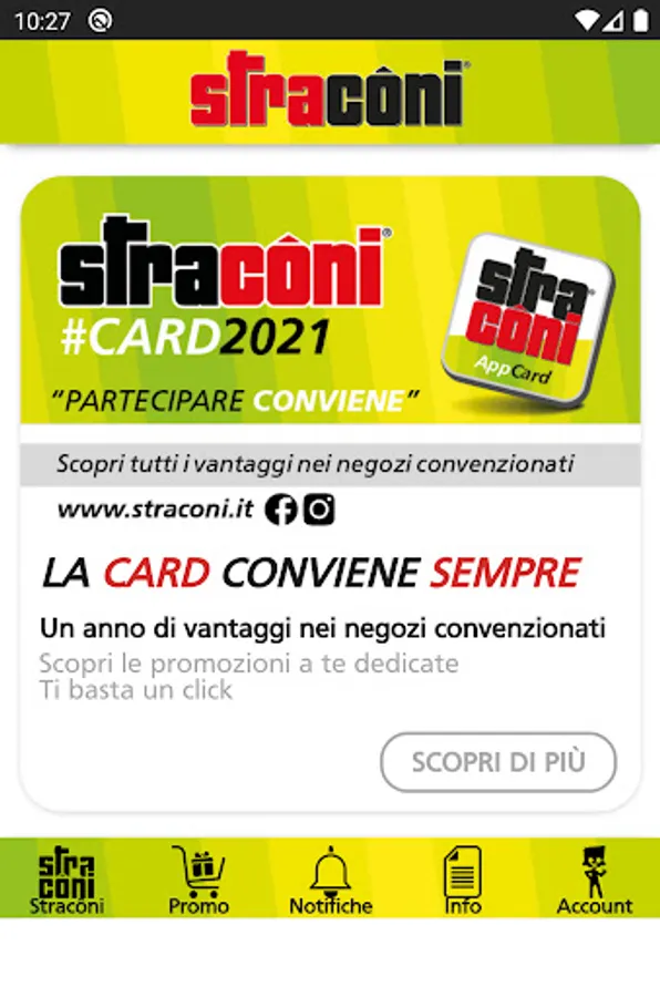 Through a push notification system you are always informed about the news and new active promotions, you will always be connected to your favorite stores and see what opportunities they have reserved for you. With STRACÔNICARDAPP, the year of advantages with Stracôni will be even richer.