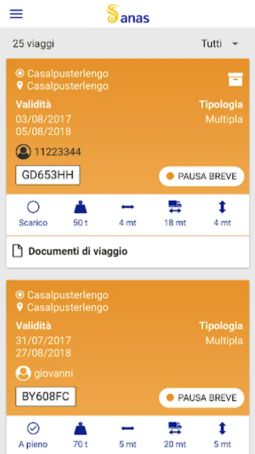 - Technical break: the user can signal the beginning of the technical break, after which other users can restart the journey;