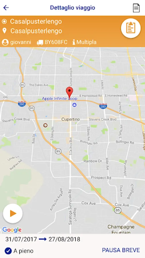 - journey Start: The user thus makes the record of the trip as prescribed in the decision giving authorization, from that moment you activate the geolocation;