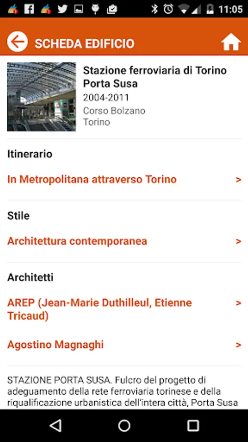 The application makes available in digital form the rich heritage of knowledge contained in the book "Architettour. 26 Itineraries of Architecture in Turin "published by SIAT, Society of Engineers and Architects in Turin.