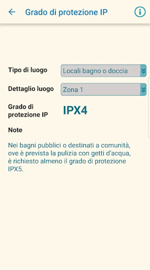- the degree of IP protection required by the CEI 64-8 standard in relation to the type of place;
