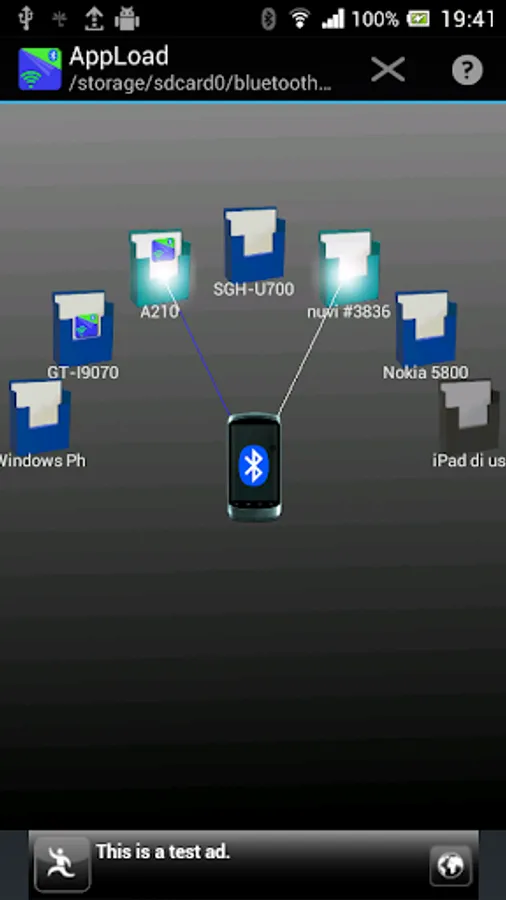 AppLoad allows you to transfer easily with one click one or more files to multiple devices through WiFi or Bluetooth©.