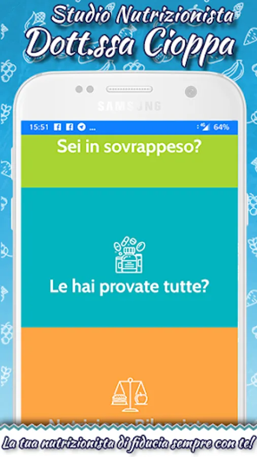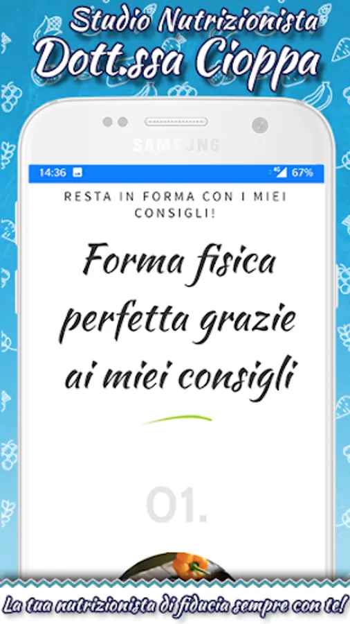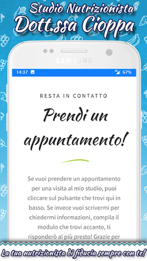 With my official app you will have a direct link to my site through which you can receive updates on my activity as a nutritionist, book visits independently and stay in touch with me for any information.