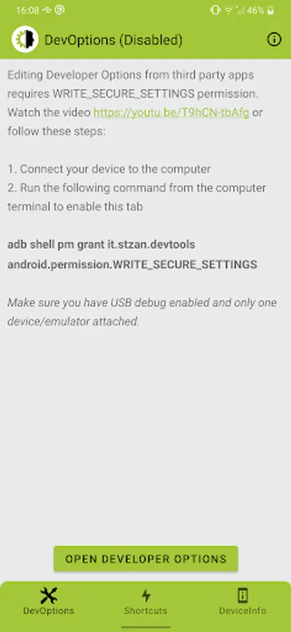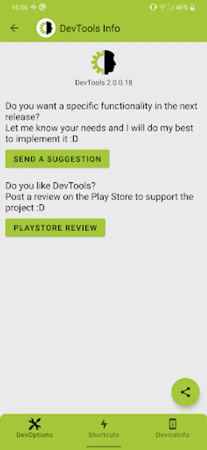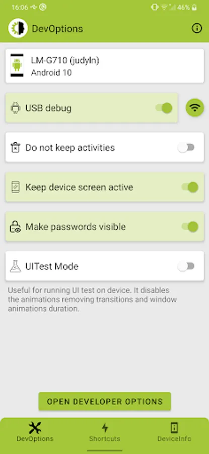 DevTools is an application that allows you editing developer options directly on the app, without the burden of going through System Settings. Some supported tools are USB Debug, UITest mode, Always Active Screen and Do not keep Activities, and the list is growing.